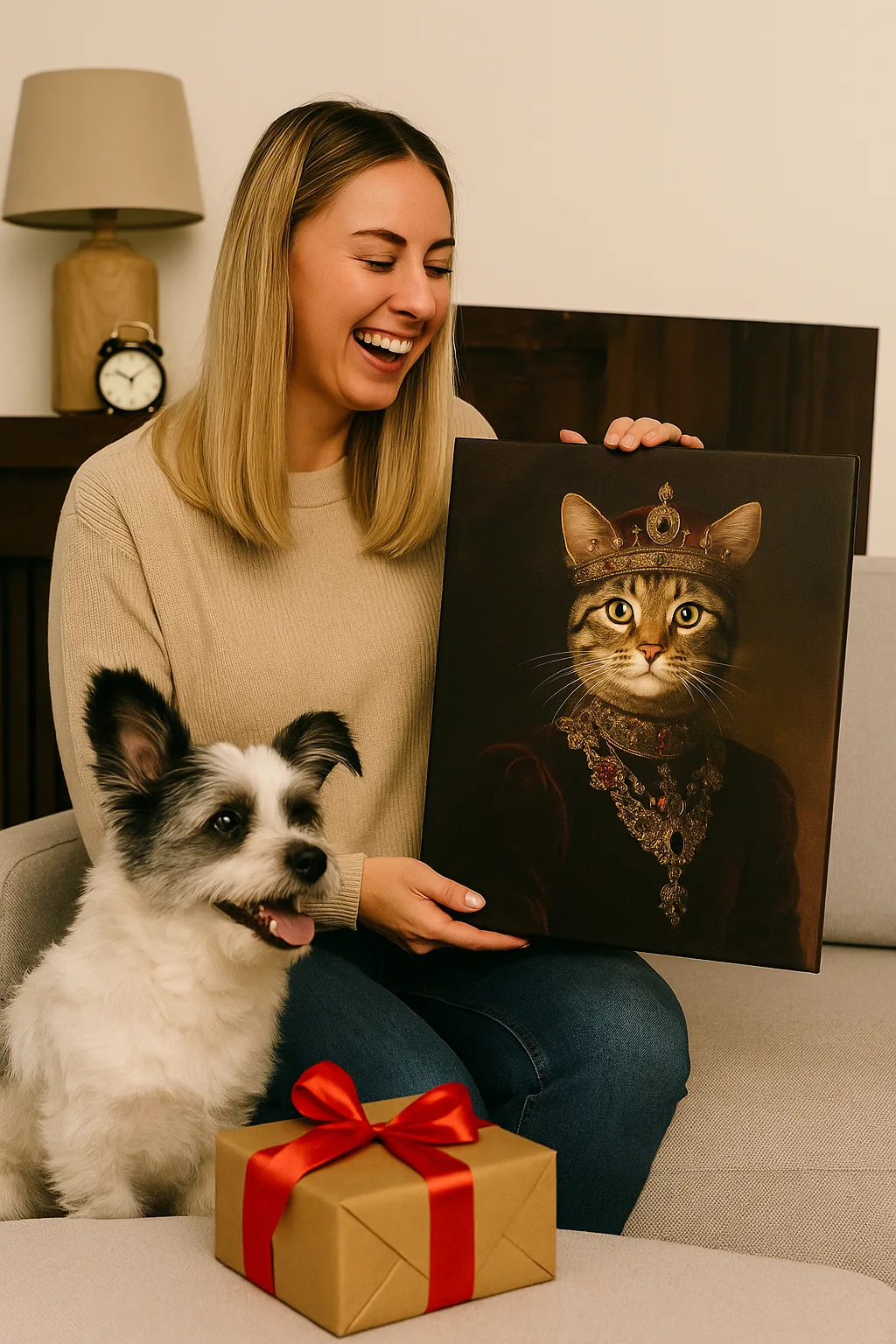 Ganz einfach: Du lädst ein Foto deines Lieblings hoch, wählst deinen Stil und dein Produkt – und wir verwandeln dein Tier in ein echtes Kunstwerk. 🎨